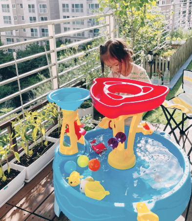 워터 테이블은 아이의 눈높이에 맞춰 설계된 테이블 형태의 물놀이 완구로, 물을 채워 수로를 만들거나 물레방아를 돌리는 등 감각 자극형 놀이를 즐길 수 있는 제품입니다.